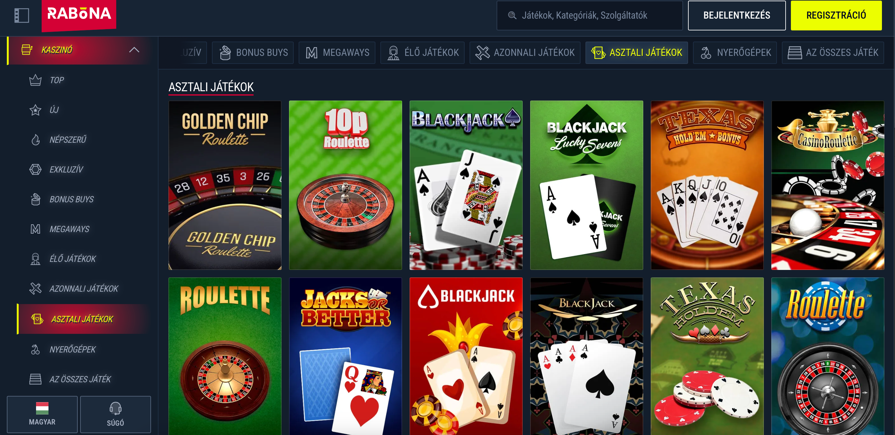 A Rabona nem csak sportfogadásban tarol, hanem a kaszinó részleg is komoly szintet képvisel. Az élő kaszinóban profi dealerekkel játszhatsz, a hangulat pedig pont olyan, mintha egy luxus kaszinóban ülnél.